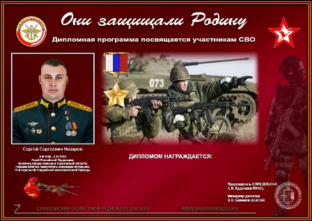 Диплом «Сергей Сергеевич Назаров» могут получить соискатели всего мира, имеющие радиолюбительскую лицензию или SWL позывной. Формат диплома электронный и выдаётся он бесплатно на сервисах: https://rv6amz.ru/., http://www.hamclub.ru/ .