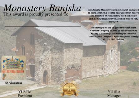 Диплом "Tvrdoš Monastery" выдается радиолюбительской ассоциацией Сербии «Богоявление» за подтвержденные двухсторонние радиосвязи с членами ассоциации.