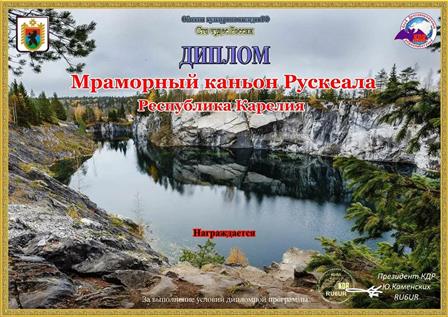 Для получения диплома "Мраморный каньон Рускеала" необходимо набрать 100 очков