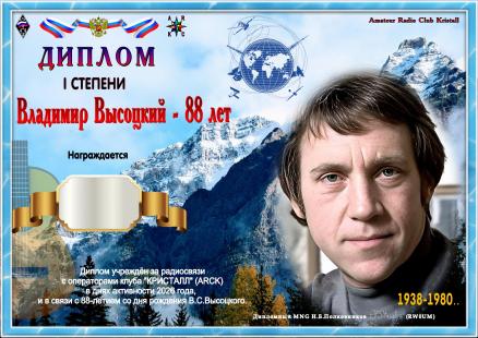 Засчитываются радиосвязи с операторами клуба Кристалл (ARCK) всеми видами излучения.