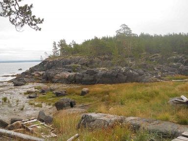 Входим в ритм. Когда перестают звать на КВ и УКВ –выключаем железо на передых и во время отлива начинаем бродить по окрестностям. Остров Кий состоит из нескольких островов и во время отлива можно на них перейти. Самый большой обитаемый. Там есть монастырь (правда не действующий, изредка проводят службы) и база отдыха. Не считая многочисленных палаточников. Грибов нет, RM2P нашел один маленький белый и все. Ягоды (брусника, черника, голубика) есть, но огромное количество туристов её почикали конкретно. Попробовать можно найти, а вот собрать нечего. Ходить после отлива по отмели прикольно - под ногами шныряет креветка. В первый раз аж подпрыгнул от неожиданности.
