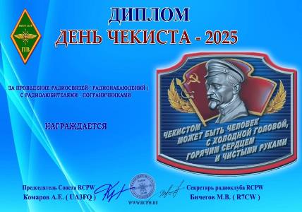 Для получения диплома необходимо набрать 108 очков (108-я годовщина создания ВЧК-НКВД-КГБ-ФСБ) за работу c членами клуба RCPW на любых разрешённых диапазонах, начиная с 00:00 UTC 13 декабря 2025 г по 23:59 UTC 21 декабря 2025 г. А для радиолюбителей нулевого района и находящихся за пределами России необходимо набрать 54 очка. Любая радиосвязь с членом RCPW дает 10 очков.